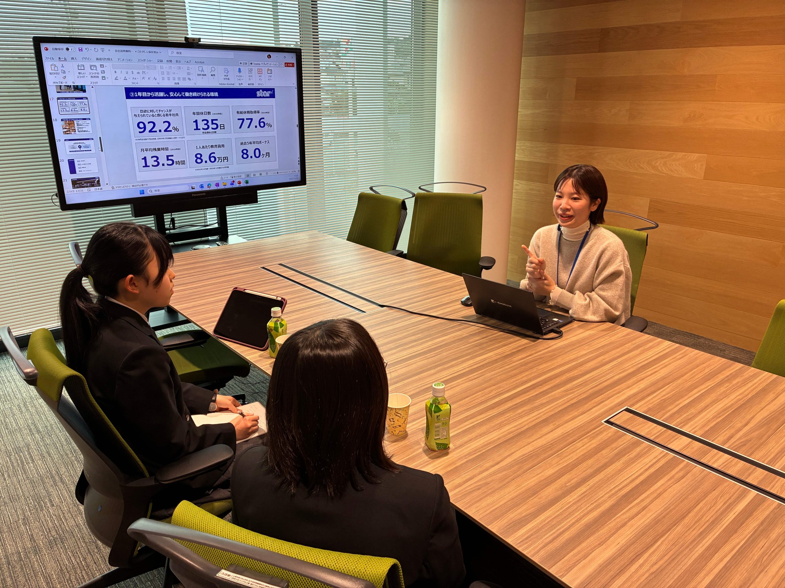 12月22日、静岡県立静岡東高等学校の生徒2名を本社(静岡市駿河区)に招き、当社事業の紹介と会社見学を実施しました。同校の探求学習の授業の一環として、静岡市内の企業を取材し、その成果をインスタグラムに投稿することを目的としています。