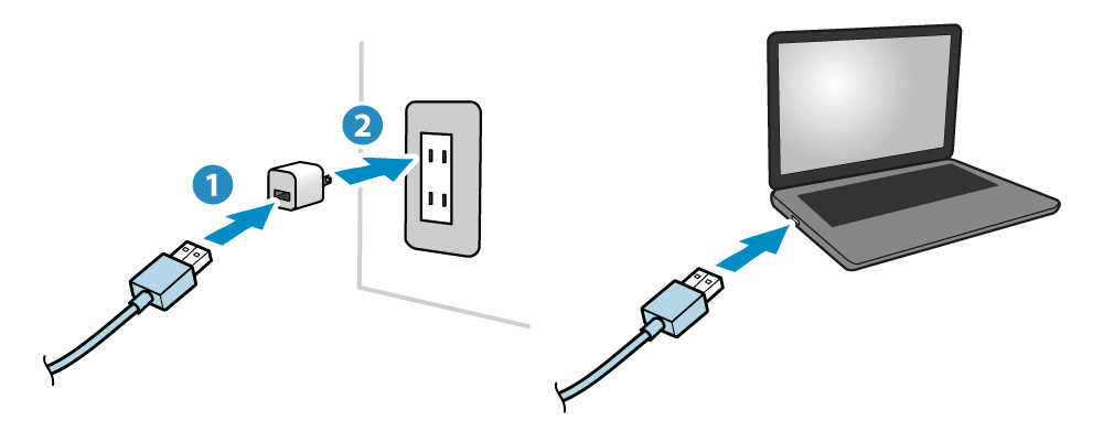 2. Connect the USB cable to the power source (USB power adapter or PC)