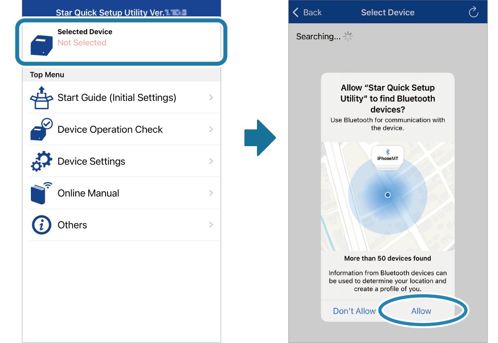 If a screen appears asking for permission to detect devices, tap [Allow].