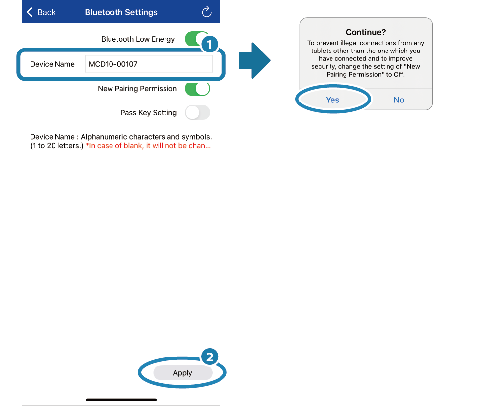 To change the setting, tap [No] and change the setting for New Pairing Permission on the Bluetooth setting screen. If you do not change the setting, tap [Yes].