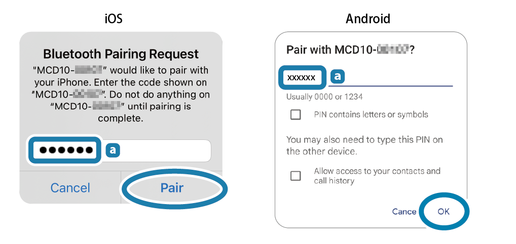 For Android device, "Usually 0000 or 1234" is displayed on the dialog box, but enter your passkey