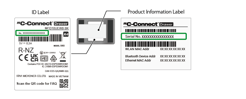 The information can be checked on the Product Information Label temporarily attached to the bottom of the product or on the ID label.