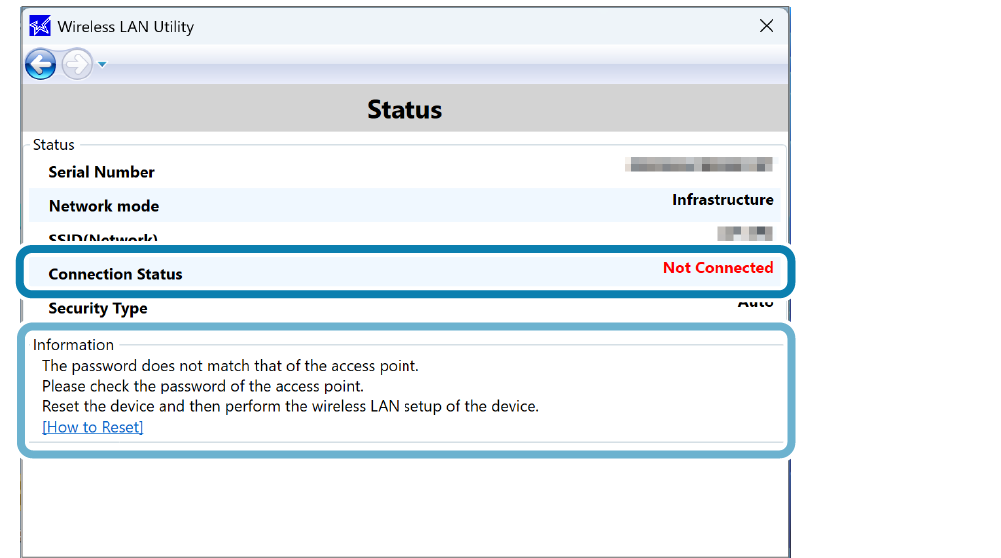 - If you are unable to solve the problem, please refer to FAQ- Wireless LAN Trouble During Operation.