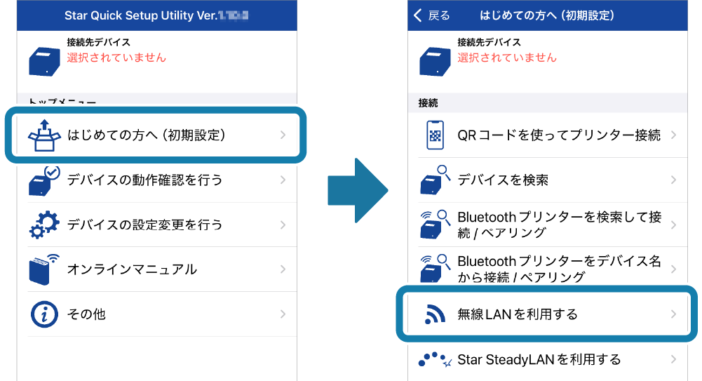 iOS、Androidをお使いの場合は、Star Quick Setup Utilityのインストールを行ってください。