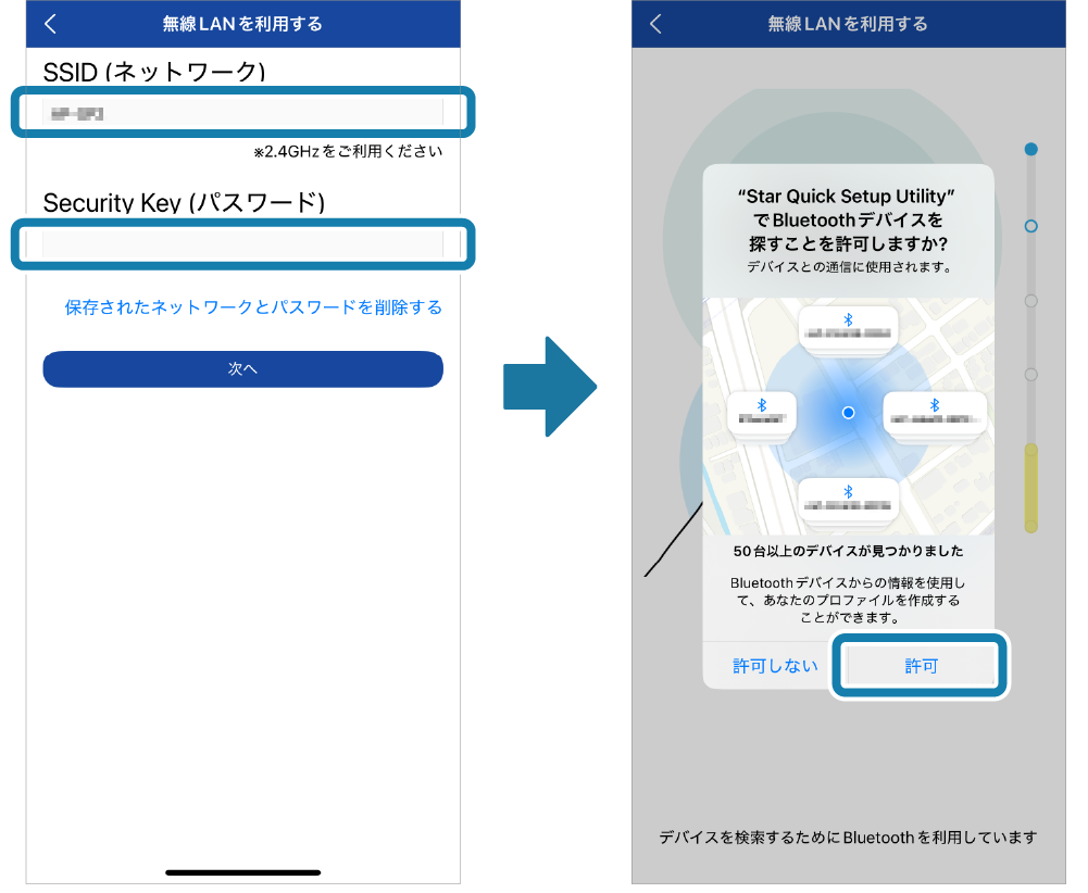 その後、デバイスの検出について許可を確認する画面が表示された場合は、[許可]をタップしてください。