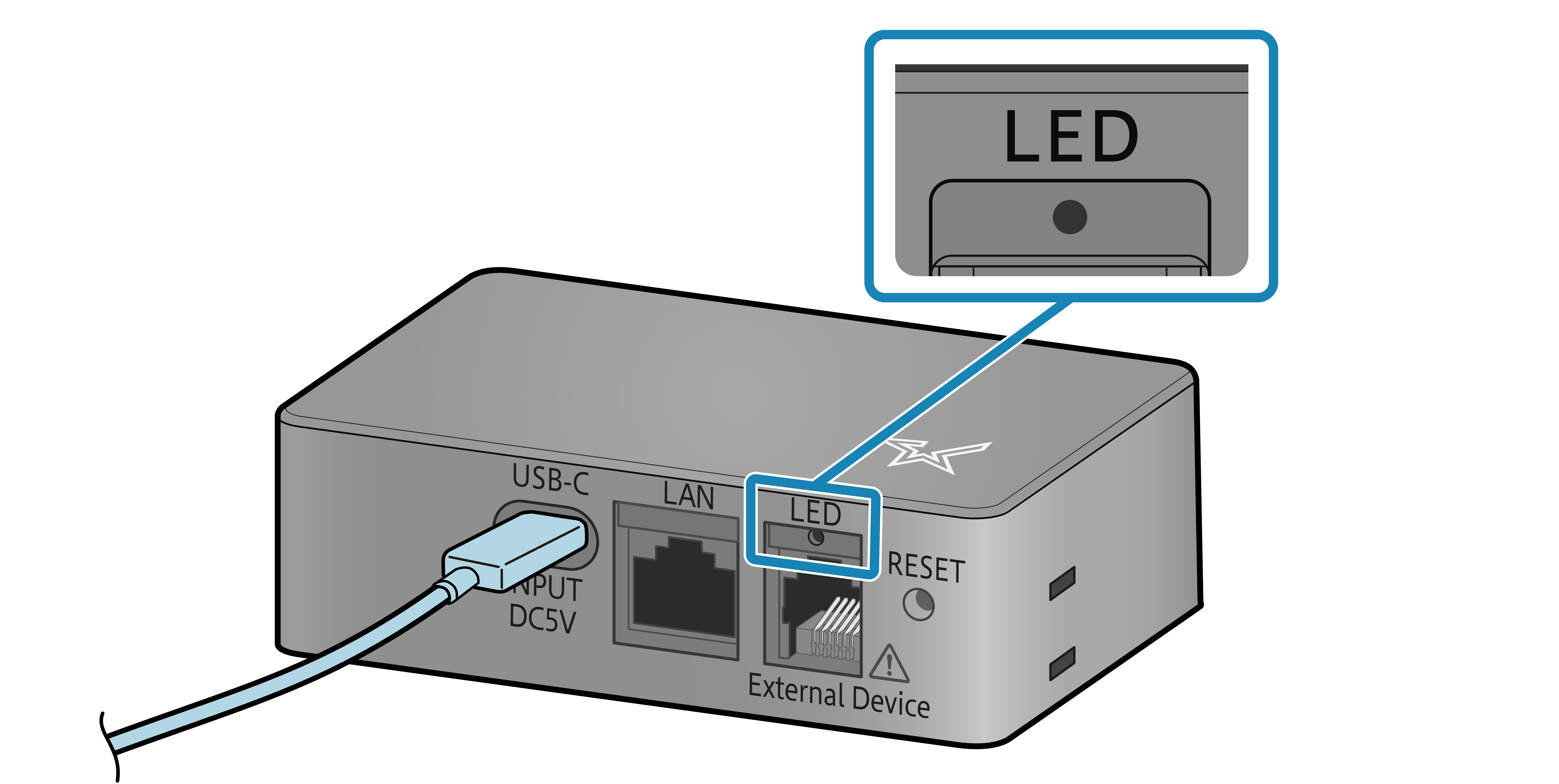- Connect a USB cable to the USB-C port on the main unit.