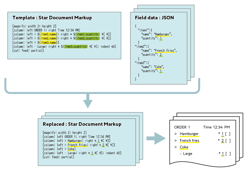 Star Document Markup is a markup language that allows you to easily generate print data for POS (Point of Sales).