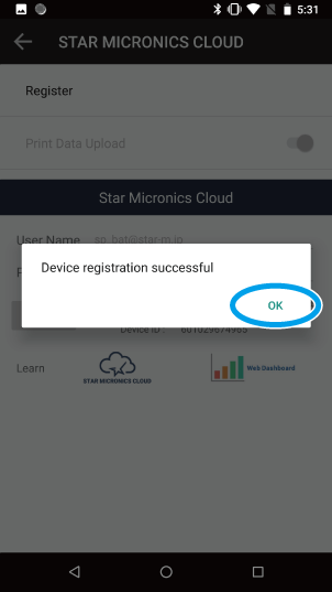 After the device registration is complete, you can configure the receipt upload settings.